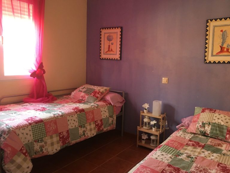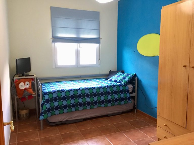 Habitación luminosa equipada con cama individual y cama nido adicional, permitiendo ampliar la capacidad según las necesidades del grupo. Dispone de armario amplio y un espacio cómodo y funcional, ideal como dormitorio adicional dentro de la casa.